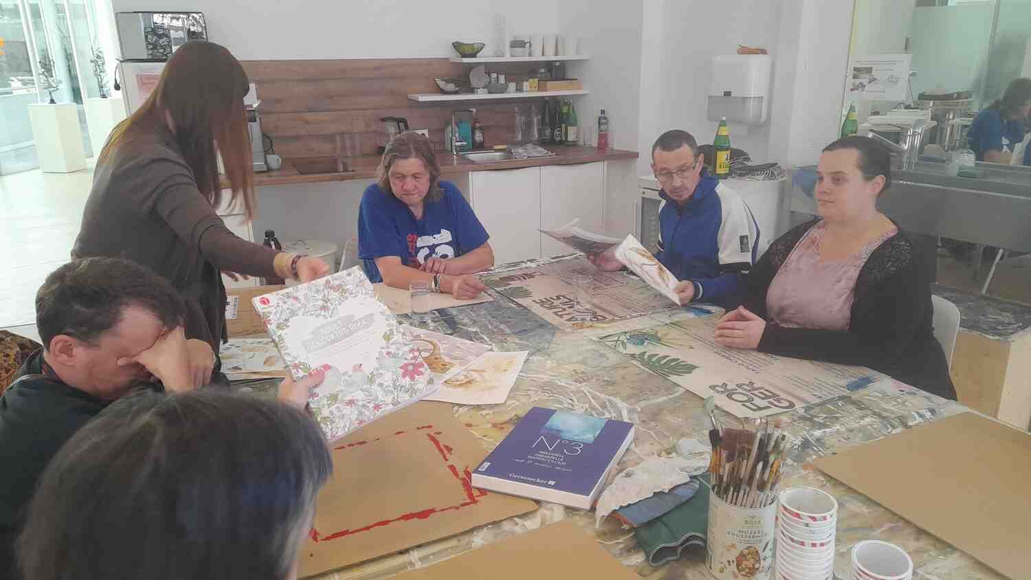 Kunstgruppenworkshop mit Nadja Kalina -Rotwein und Kaffee trifft Papier